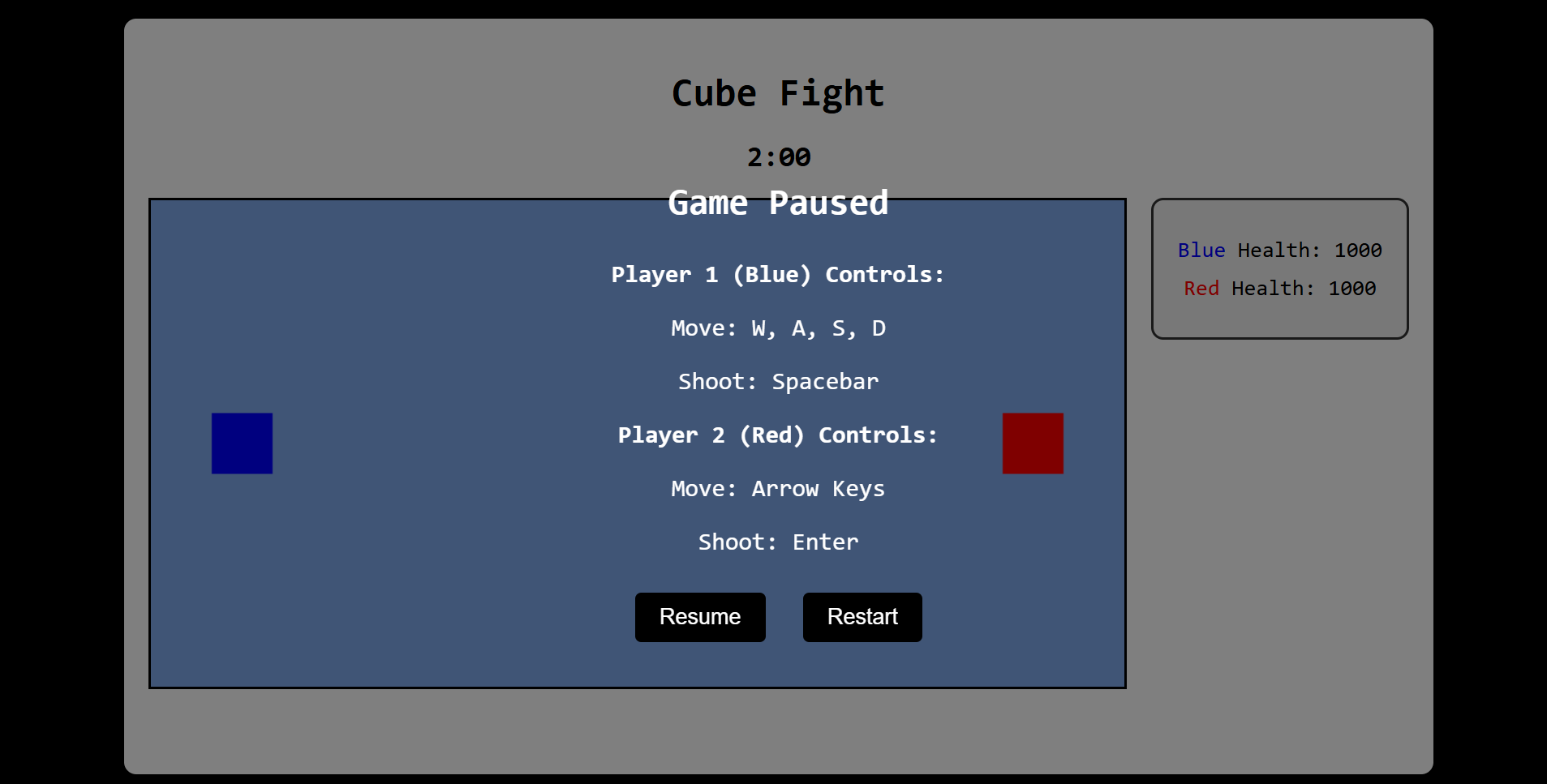 Blue: Move = WASD. Shoot = Spacebar